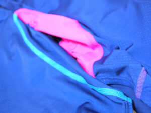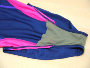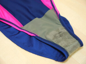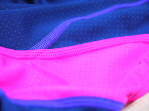 脇から股へのピンクスティッチラインと紫のスティッチがワンポイントとなっていてスピード感もあります。